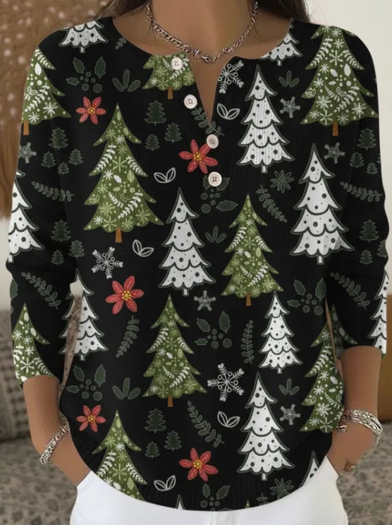 Bring cheerful holiday spirit to your wardrobe with this Christmas-themed blouse. Designed for comfort and effortless style, it’s the perfect top for gatherings, festive outings, or cozy days at home.